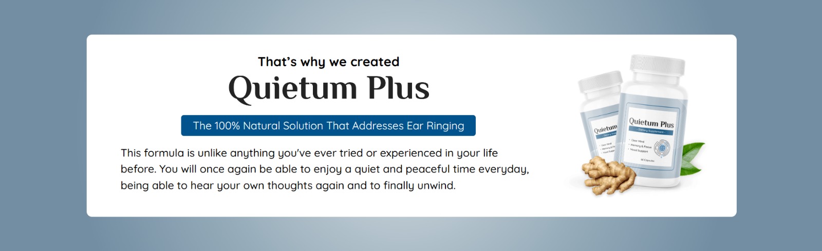 Quietum Plus is a 100% natural supplement designed to address ear ringing and other hearing issues. This formula uses only the best in class and natural ingredients to achieve desired results.